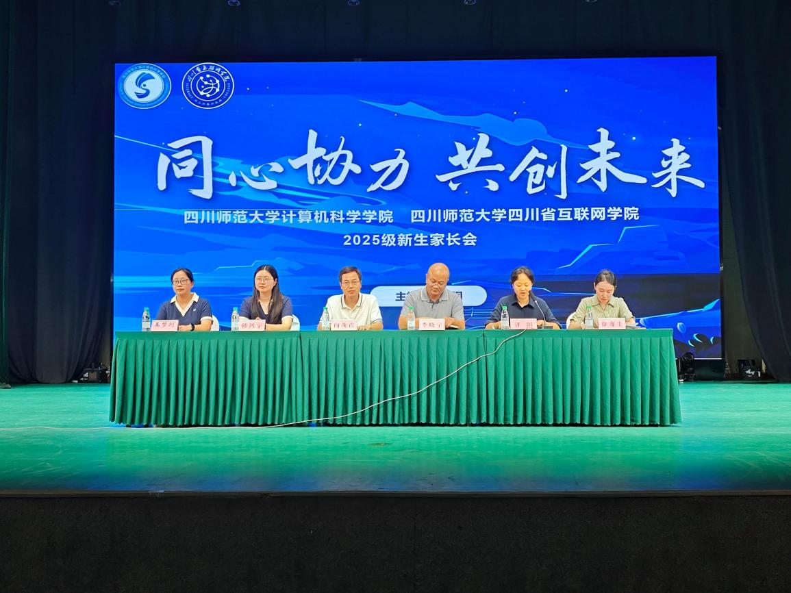 2025年9月9日下午四点,计算机科学学院与四川省互联网学院在成龙校区龙湖剧场联合举办了2025级本科新生家长会。计算机科学学院党委书记向茂甫、院长李晓宁、党委副书记汪闱、副院长韩鸿宇、大一辅导员徐寄尘和王梦珂出席了本次会议。家长会由汪闱主持。