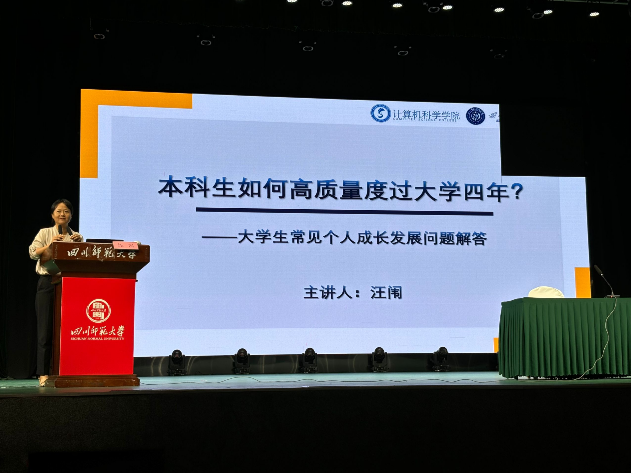 9月12日,计算机科学学院与互联网学院在龙湖剧场联合举办2025级新生学业与生涯教育讲座。学院党委副书记、纪委书记汪闱围绕“本科生如何高质量度过大学四年—大学生常见个人成长发展问题解答”,从误解澄清、决策优化、学业储备、能力提升四个维度开展了分享。