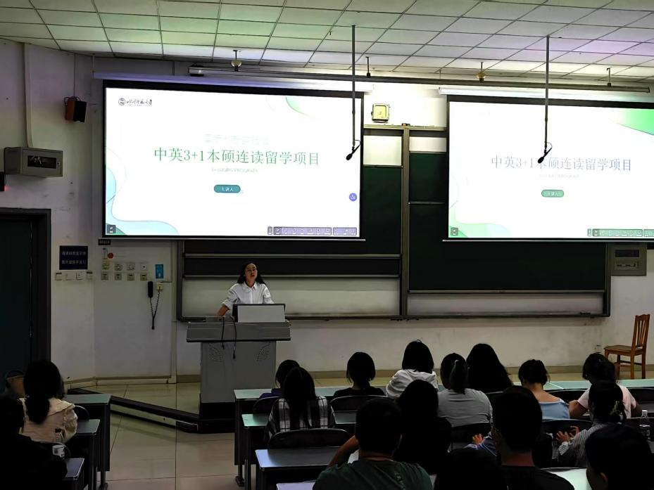 宣讲中,李春霞老师详细介绍了“国际创新实验班中英3+1本硕连读留学项目”整体情况。李老师以生动详实的事例,系统讲解项目合作院校、培养体系及核心优势,重点解读了以“高效升学+职业赋能”为核心的中英“3+1”项目培养模式。