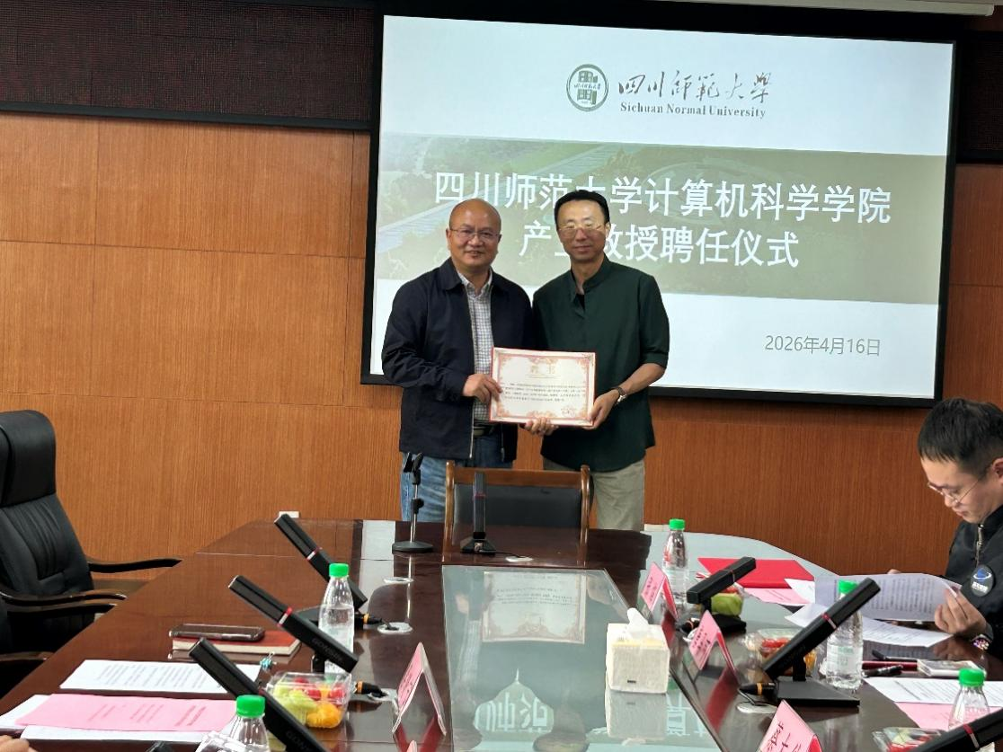 2026 年 4 月 16 日,计算机科学学院、互联网学院在成龙校区第一实验楼西 204 会议室举行产业教授聘任仪式暨学院“十五五”规划、人才培养方案行业专家论证会。学院党委书记向茂甫、院长李晓宁、副院长李大可,各专业负责人及教师代表,以及来自多家企业的产业教授与代表参加会议。会议由李晓宁主持。