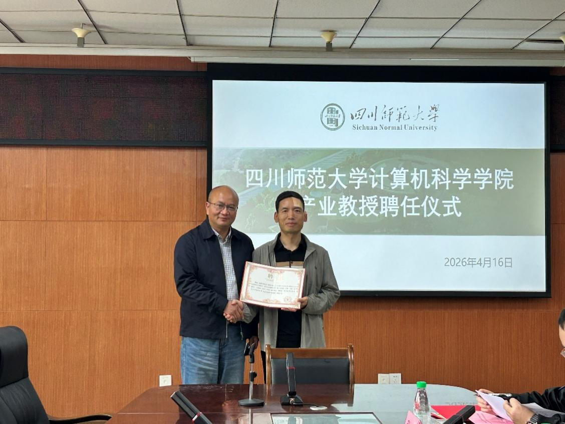 会上,李晓宁院长为各位产业教授颁发聘书。正式聘请成都华栖云科技有限公司余军、环天智慧科技股份有限公司张焰、成都慧策数元科技有限公司唐马可、四川金手指造梦科技有限公司蔡大伟、重庆融景科技有限公司张应平担任学校产业教授,为学院进一步拓宽校企合作渠道,丰富协同育人载体,深化产教融合、推进高素质应用型人才培养注入新动能。